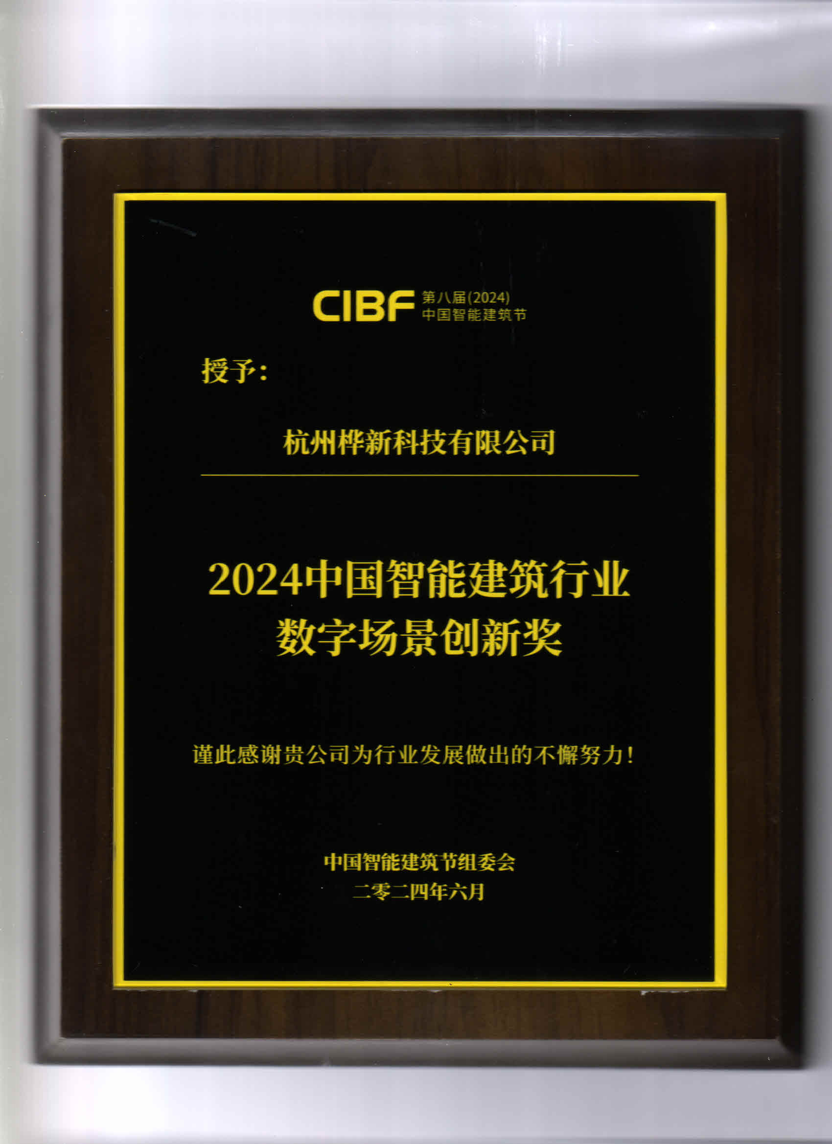 喜報:杭州樺新科技有限公司獲得中國智能建筑行業(yè)數(shù)字場景創(chuàng)新獎(編號:D-38)。
